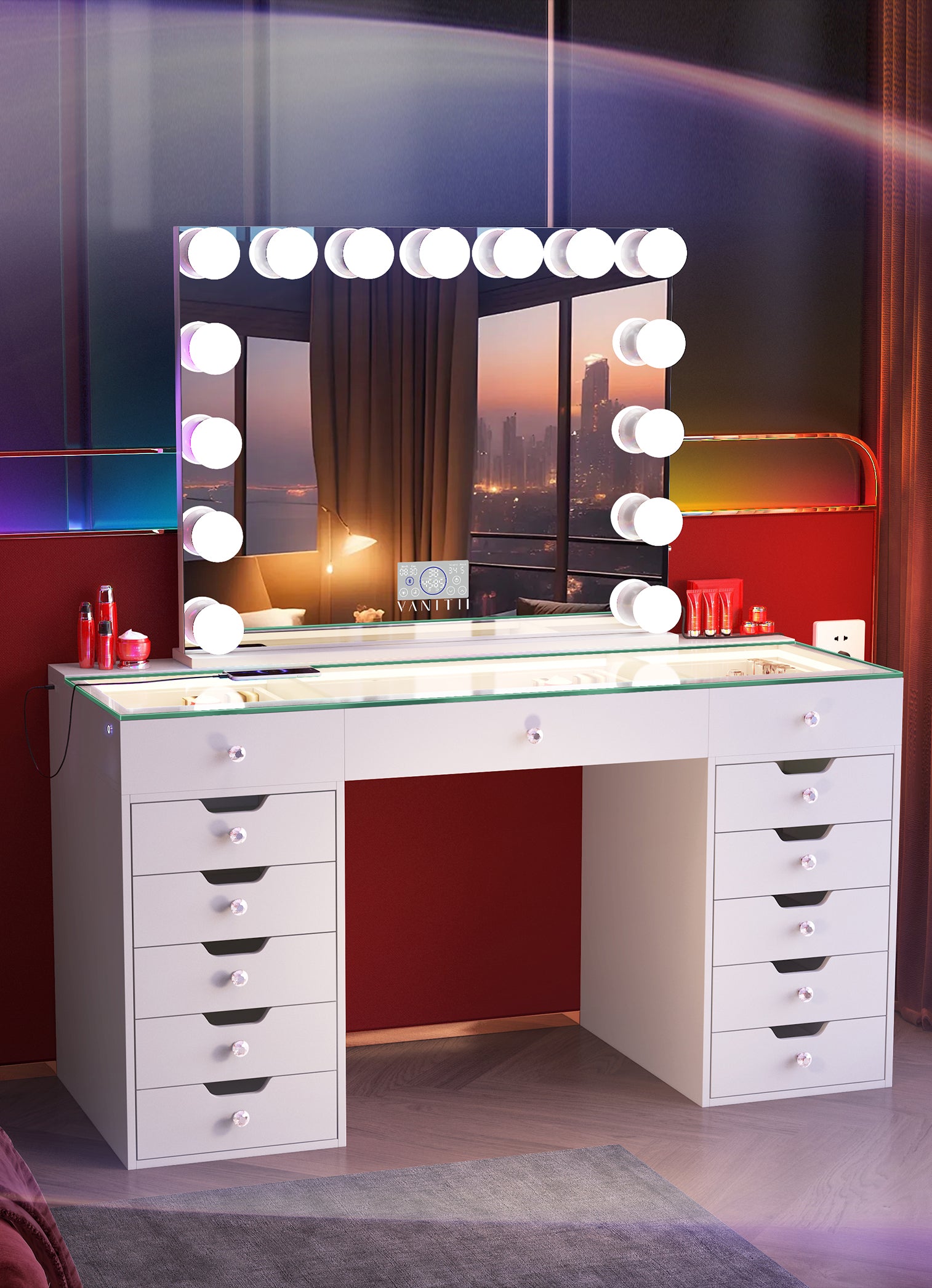 VANITII Eva Vanity Desk - 13 Storage Drawers