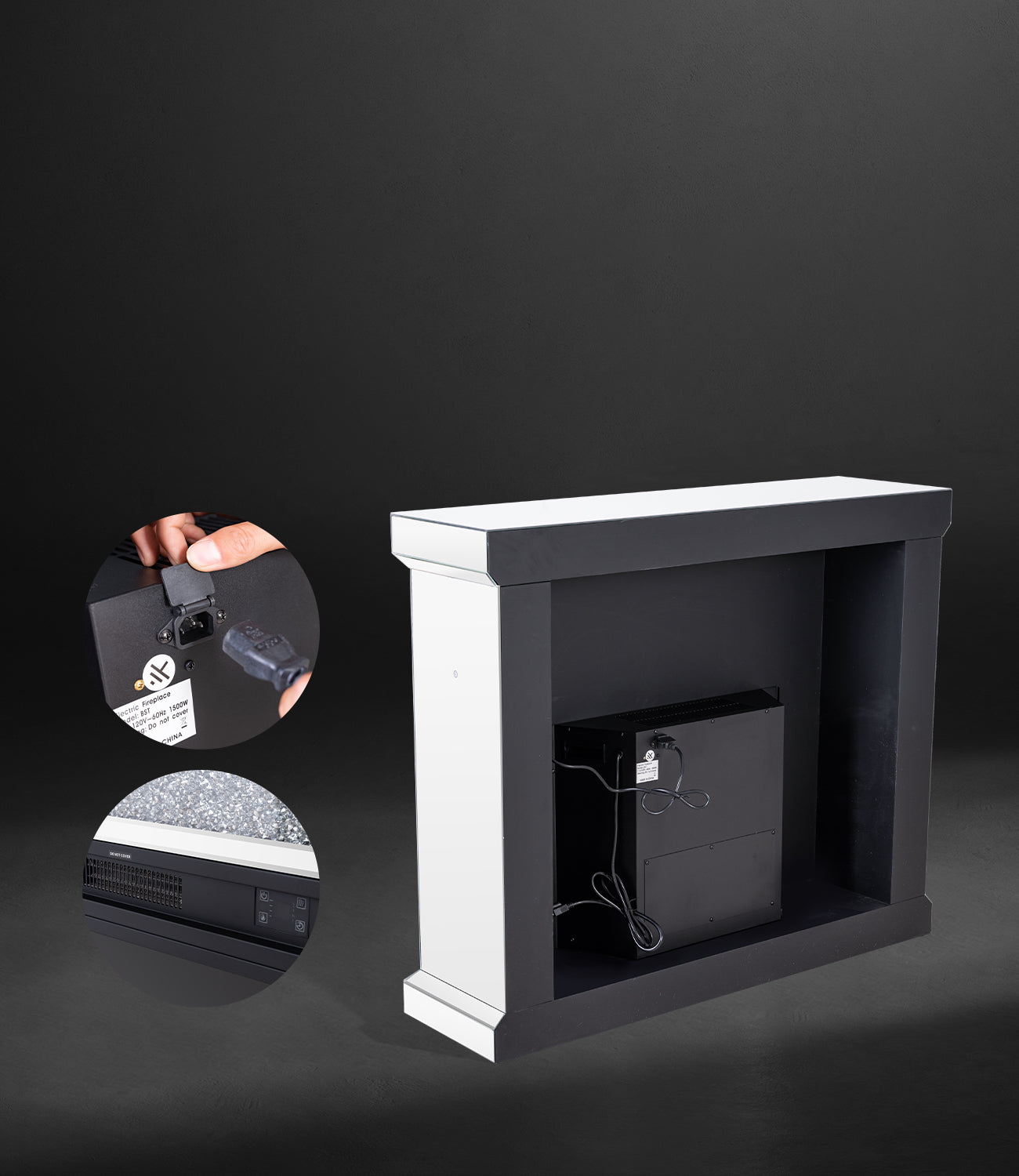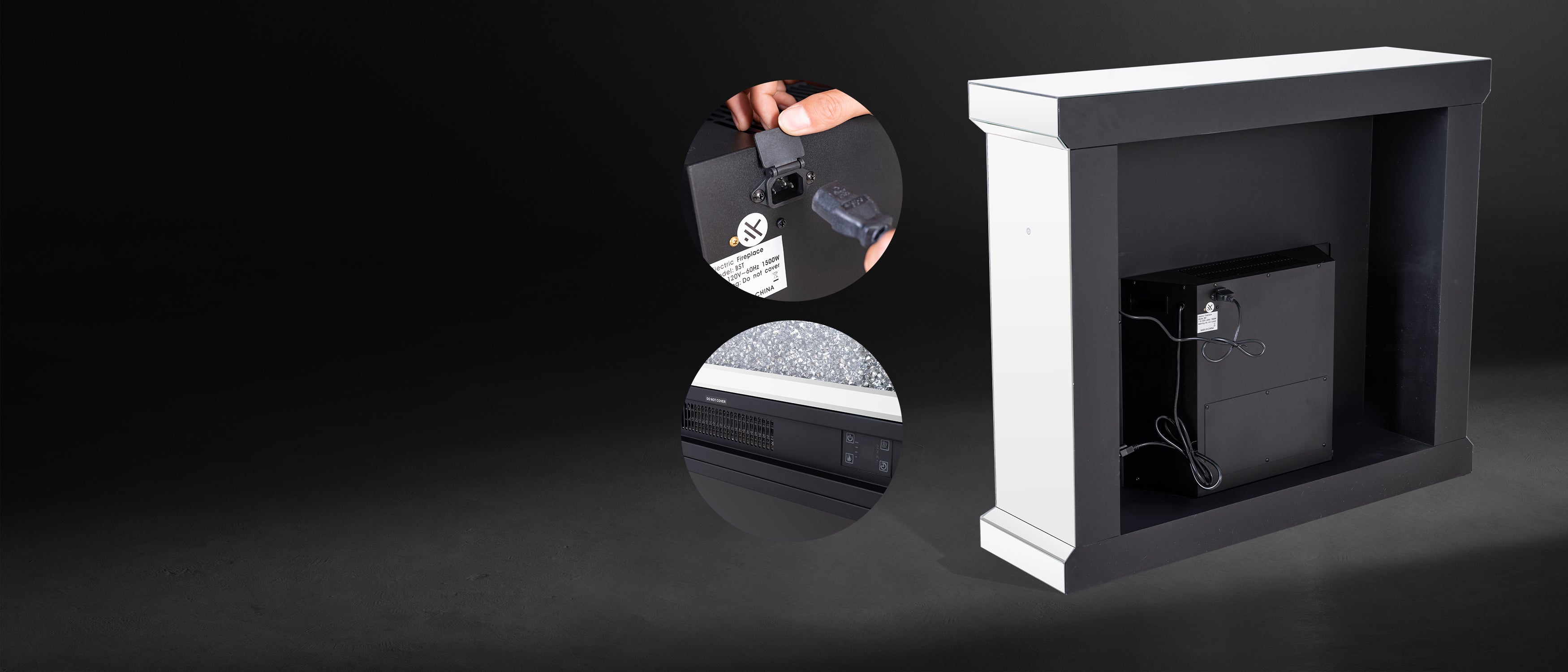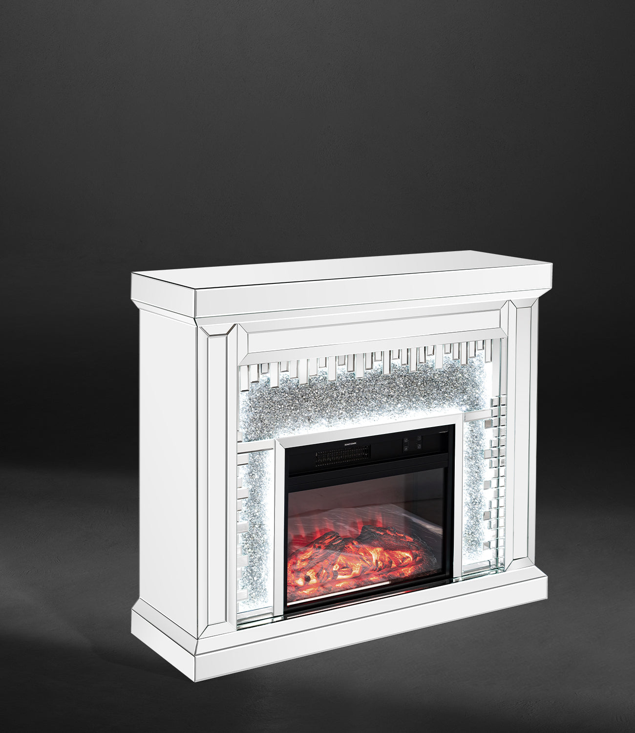 Fully Assembled 47" Crushed Diamonds LED Mirrored Fireplace