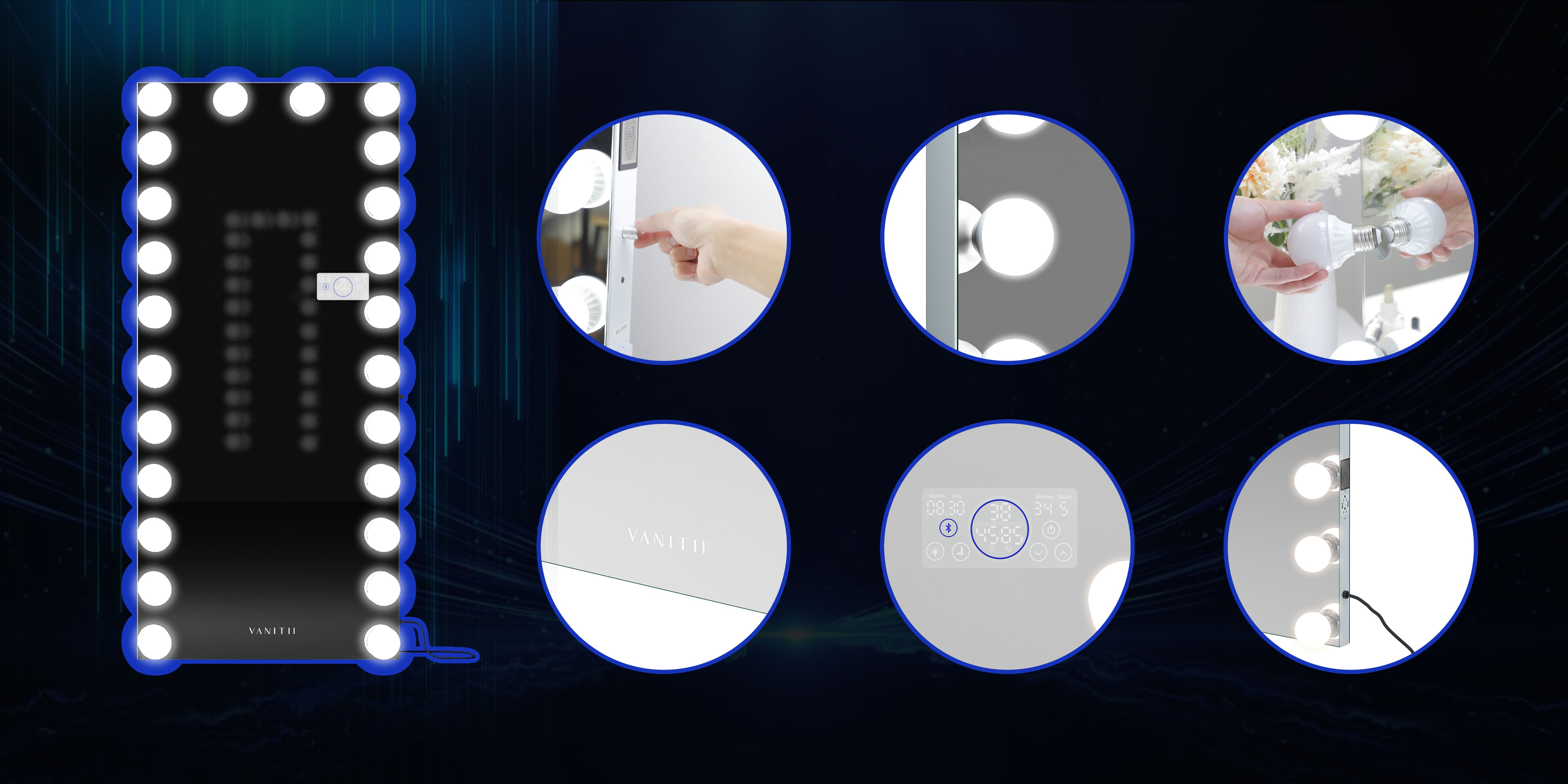 VANITII Marilyn Hollywood Vanity Mirror - Full Length Wall Mountable Vanity Mirror with 24 Dimmable LED Bulbs