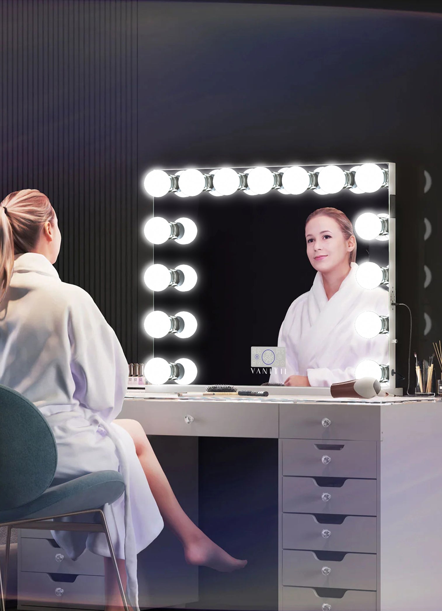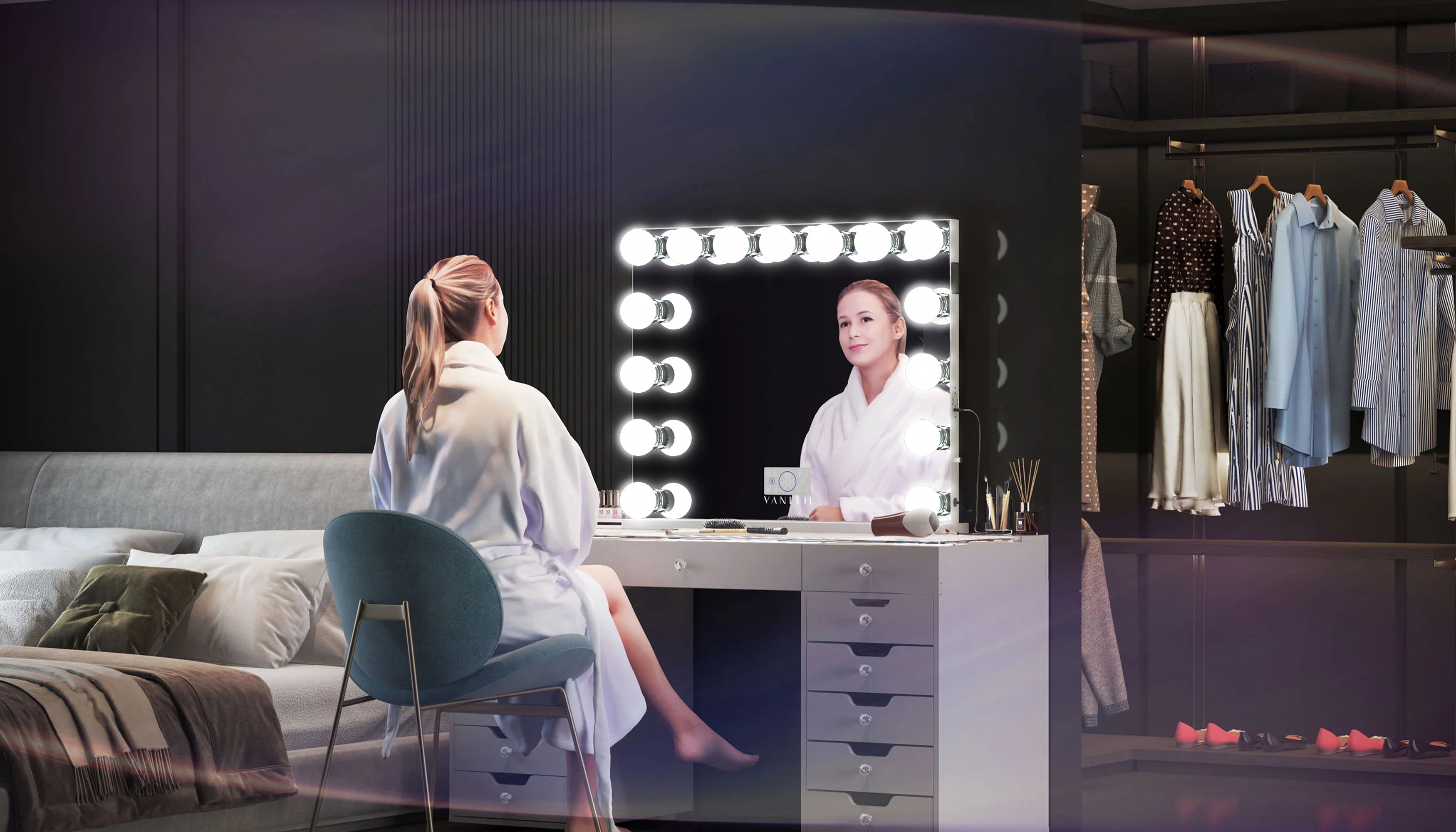 Start with one of our vanity desk and create your bundle by adding a glamorous Hollywood vanity mirror