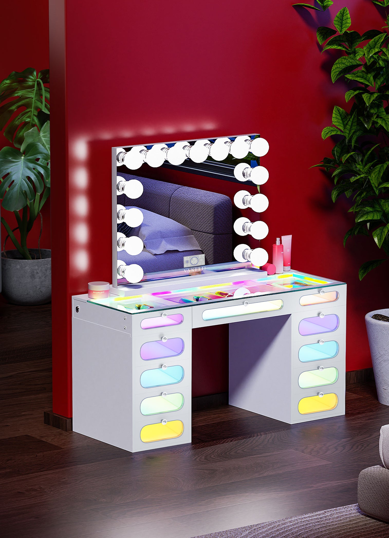 New Release ! VANITII Priscilla Vanity Set with Hollywood Vanity Mirror Pro with Jewelry Cabinet