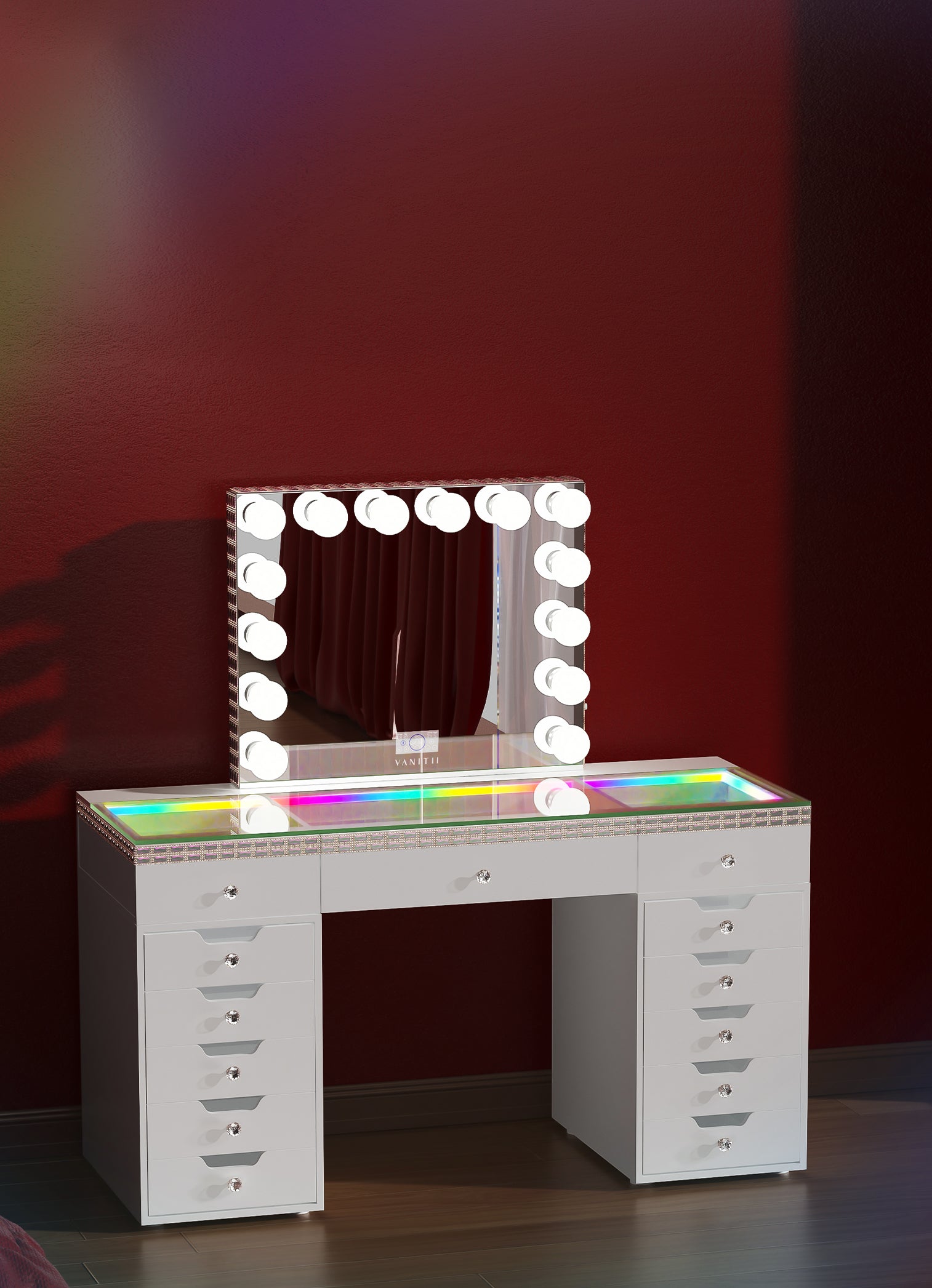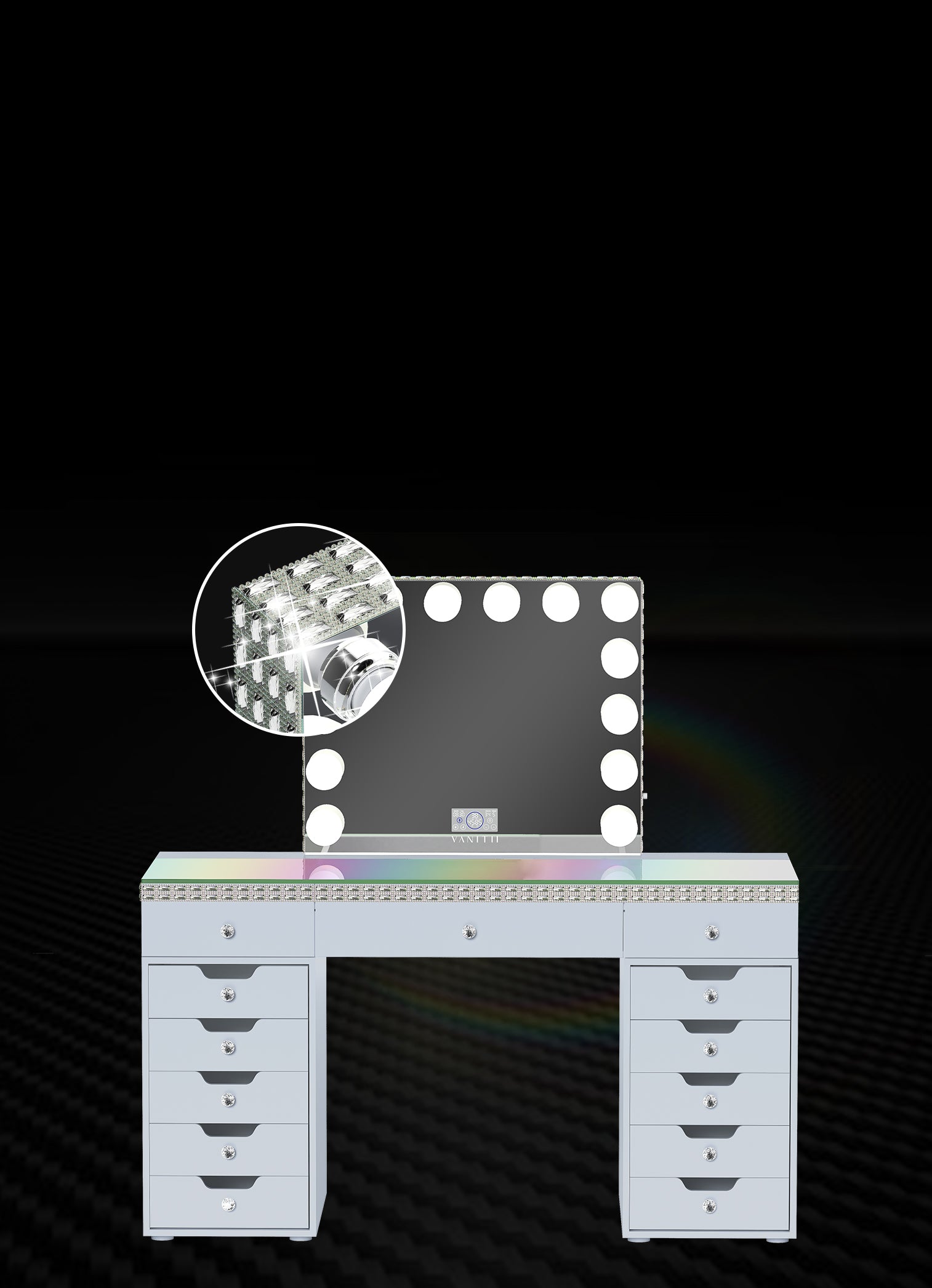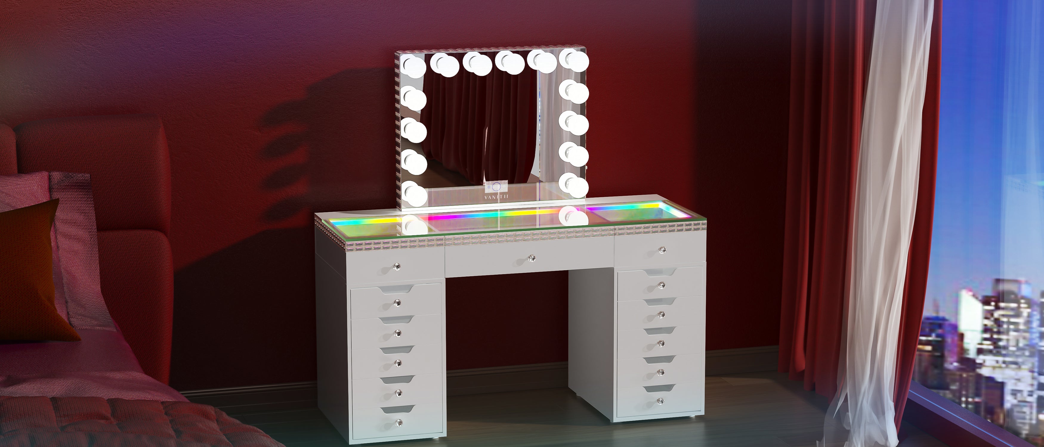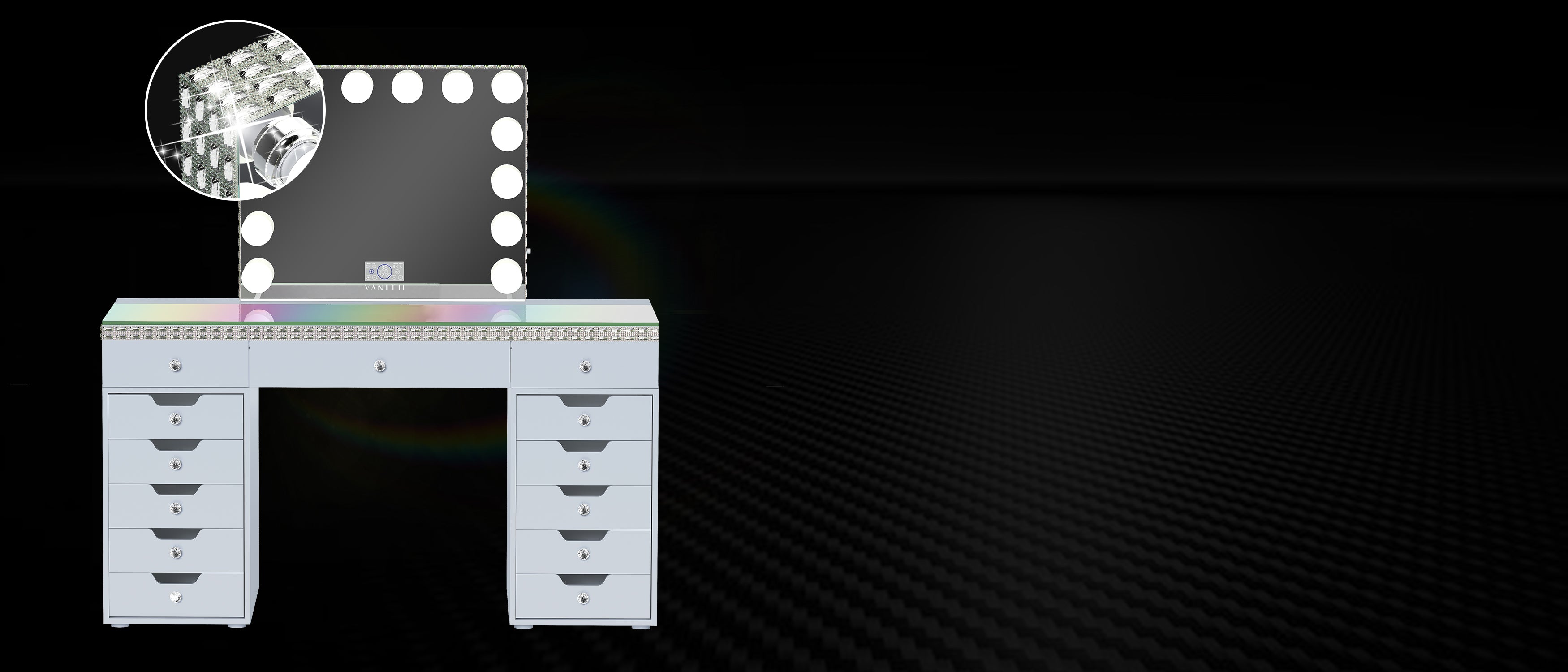 Start with one of our vanity desk and create your bundle by adding a glamorous Hollywood vanity mirror