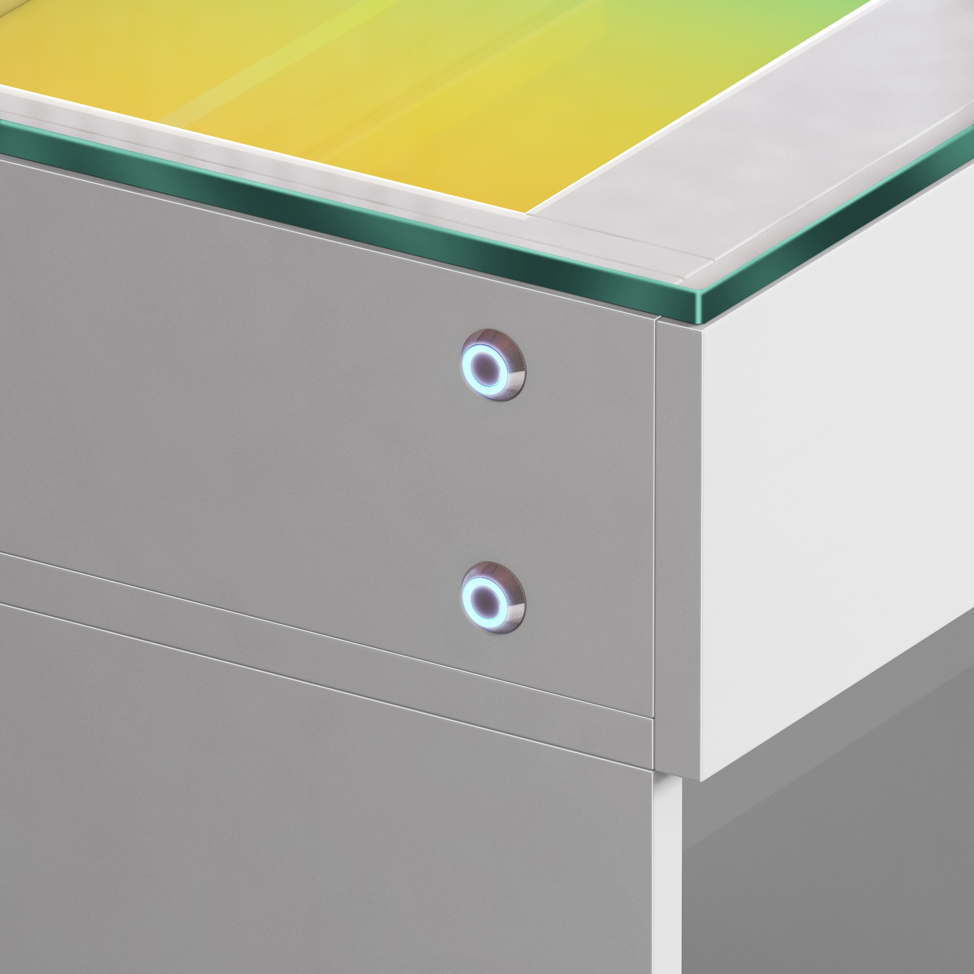 Elegant All-glass Tabletop - The premium quality glass tabletop offers a clear view. Keeping everything within sight and at your fingertips.
