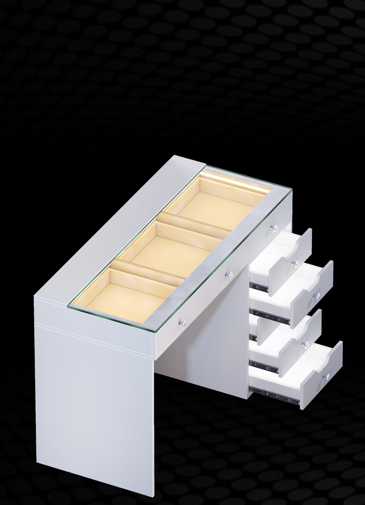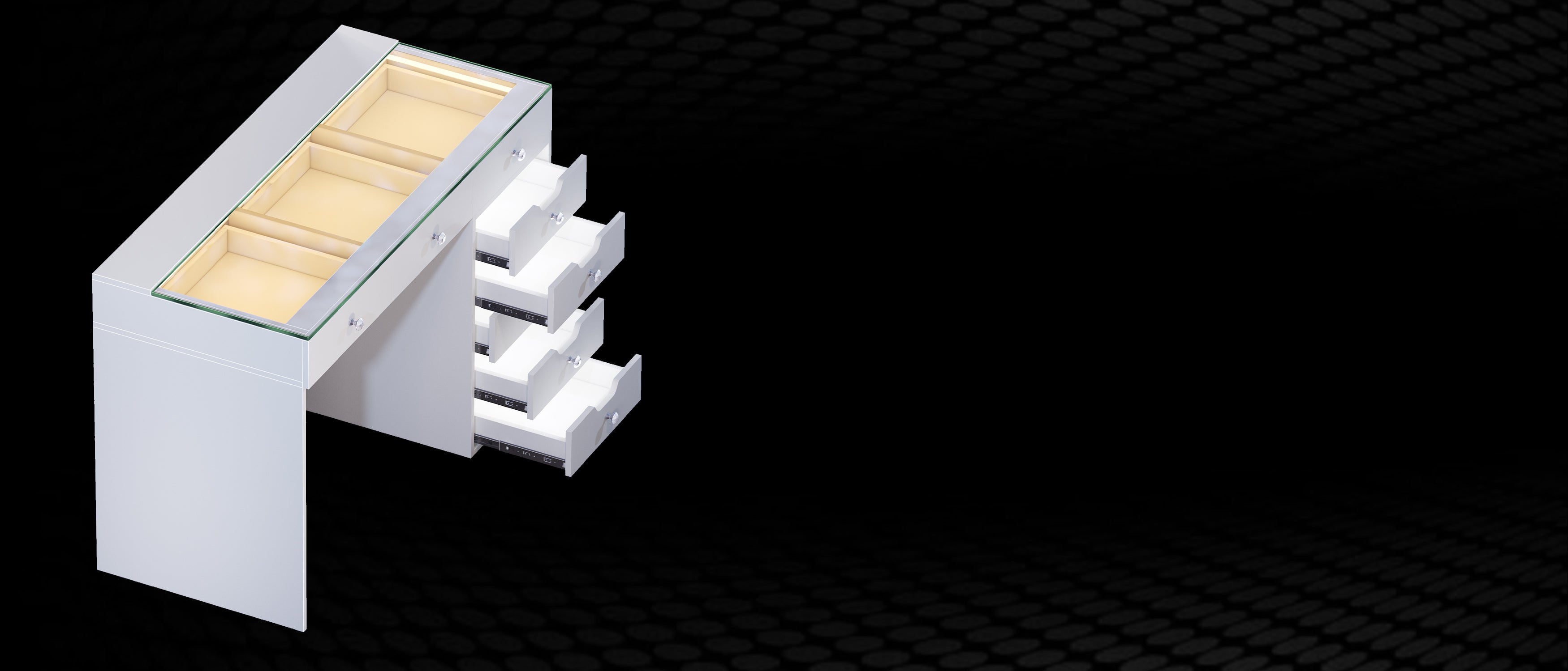 Multi-purpose Storage Drawers - 8 soft close large table drawers to help you organize your accessories.