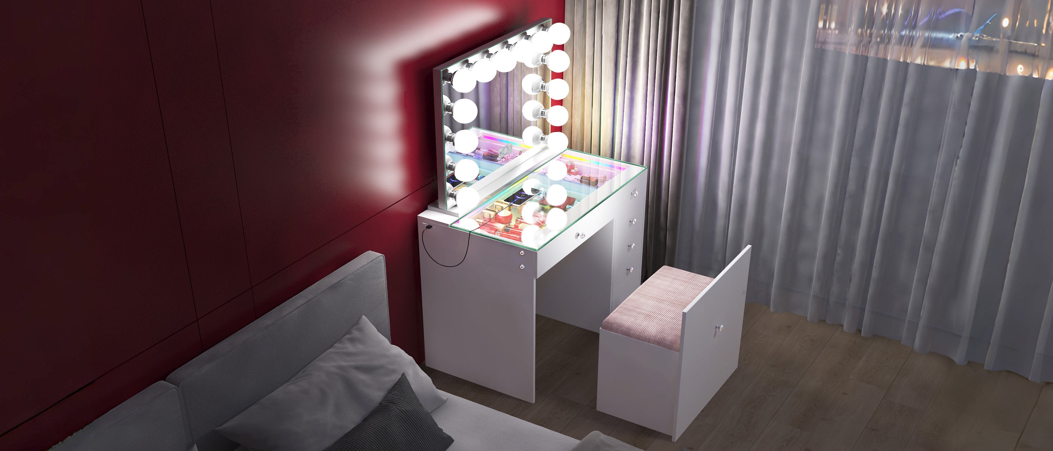 New Release ! VANITII Mini Diana Vanity Desk and Marilyn Mirror with Soft Hidden Stool